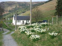 The Manor valley is one of the most beautiful in southern Scotland. Mostly sheep grazing land, the hills are a patchwork of grasses, woodland, bracken and heather. The Manor Water rises among some of the highest Borders hills, flows past sheltered winter grazing and stands of Scots pine and reaches the River Tweed just upstream from Neidpath Castle. Glen Manor, "the cottage with a smile"Langhaugh Farm is about 6 miles up the valley, and Glen Manor (photograph right) is situated on its own about 200 yards from the farmhouse. Although Langhaugh is completely rural and secluded it is only about 45 minutes from the centre of Edinburgh, and an hour from Glasgow. |