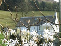 The Manor valley is one of the most beautiful in southern Scotland. Mostly sheep grazing land, the hills are a patchwork of grasses, woodland, bracken and heather. The Manor Water rises among some of the highest Borders hills, flows past sheltered winter grazing and stands of Scots pine and reaches the River Tweed just upstream from Neidpath Castle. Glen Manor, "the cottage with a smile"Langhaugh Farm is about 6 miles up the valley, and Glen Manor (photograph right) is situated on its own about 200 yards from the farmhouse. Although Langhaugh is completely rural and secluded it is only about 45 minutes from the centre of Edinburgh, and an hour from Glasgow. |